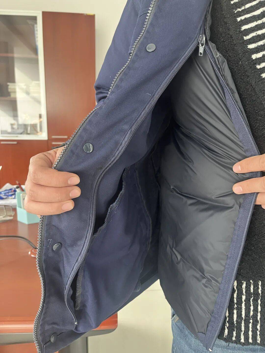 正在更新为羽绒服后,公司再次收到员工看法,响应固然装束变得简易,但因为普通频仍穿戴与洗涤,存正在羽绒零落影响保暖的题目。以是正在2025年召开的职工代外大会上,造成了新一轮改观计划。
