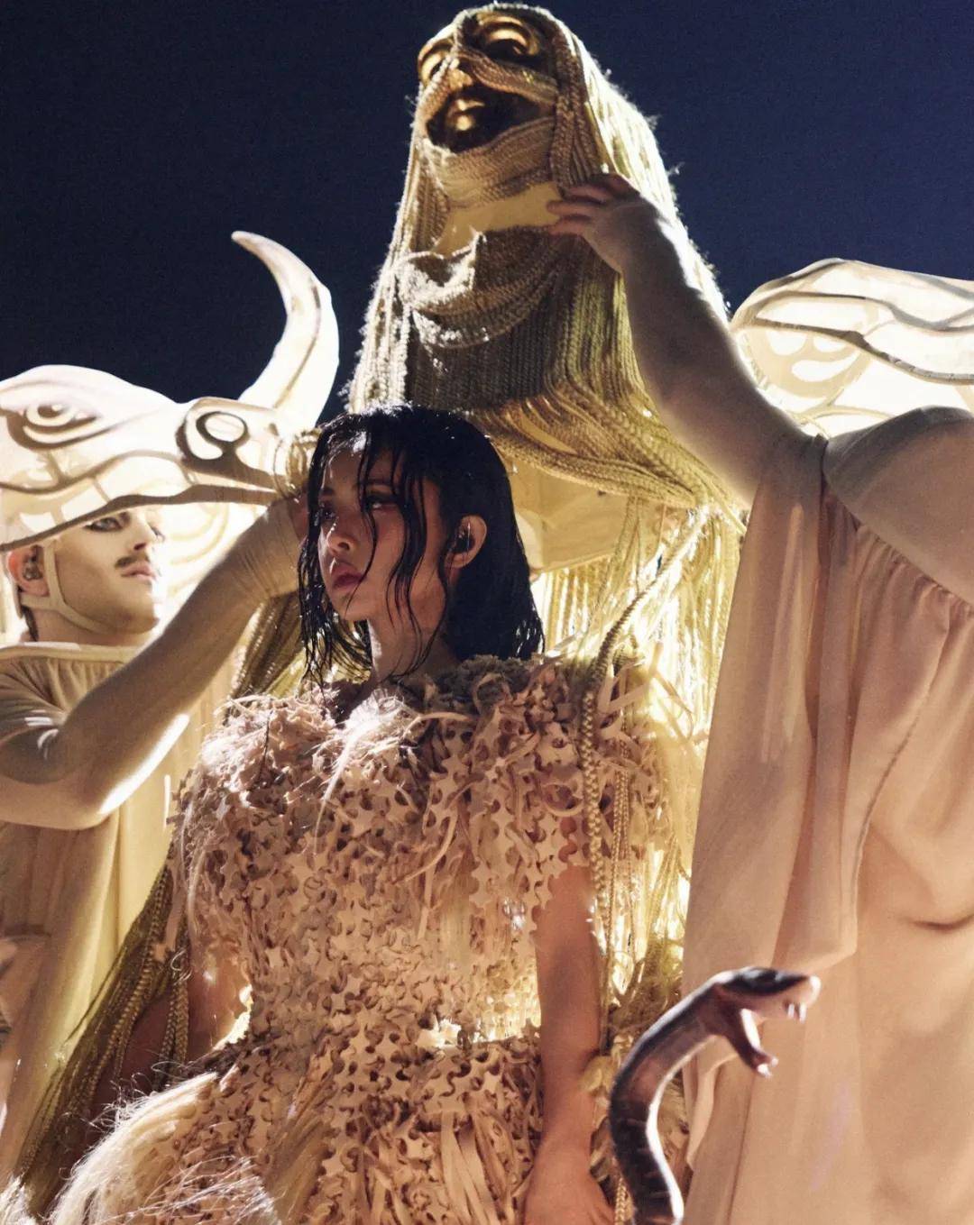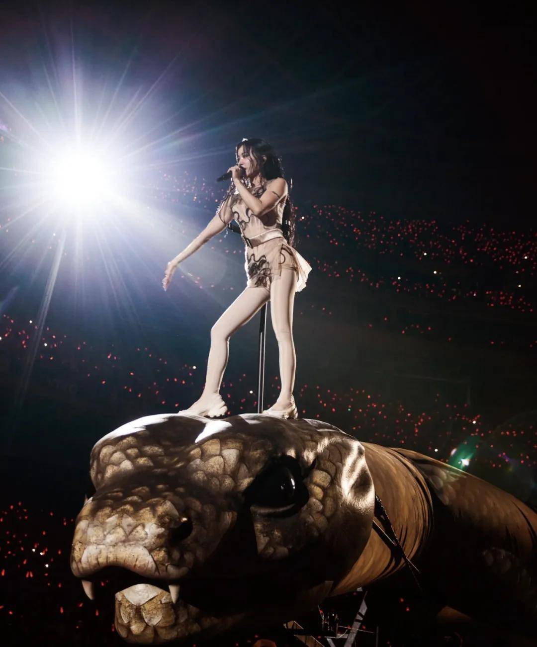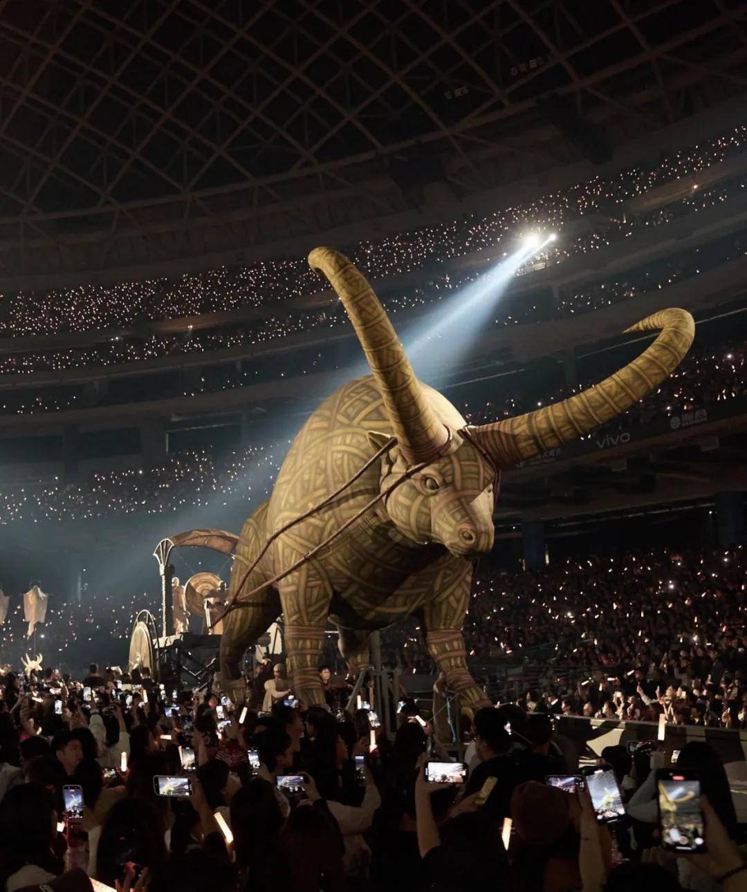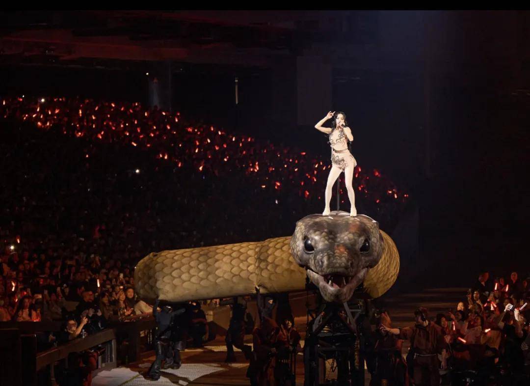 最引人防备确当然是演唱会上呈现的那些巨型装备与“异兽”,耗资超1.7亿新台币打制约20只奇幻混种生物道具,个中就席卷开场的3层楼高的公牛和正在舞台上蜿蜒的巨蟒。
